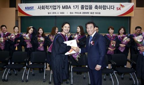 지난 14일 서울 동대문구 카이스트 홍릉캠퍼스에서 진행된 졸업식에는 김창근 의장, 이문석 SK사회공헌위원장 등 SK측 인사와 이병태 SK사회적기업가센터장, 정재민 사회적기업 MBA 책임교수 등이 참석해 사회적기업 MBA 첫졸업을 축하했다.