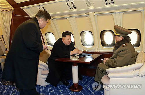 김 제1위원장은 기내 집무실에서 황병서 군 총정치국장과 한광상 당 부장에게 지시를 내리거나 창밖의 공사 현장을 바라보는 비교적 여유로운 모습을 연출했다.