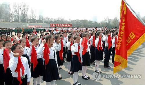 | △ 北, 김일성 탄생 102주년 기념 조선소년단 전국연합단체대회 (평양 조선중앙통신=연합뉴스) 북한 김일성 주석 탄생 102년을 기념하는 조선소년단 전국연합단체대회가 평양 창덕학교에서 열렸다고 13일 조선중앙통신이 보도했다. 2014.4.13 photo@yna.co.kr |