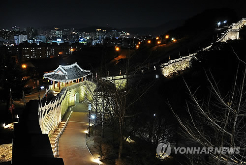 | △ '반짝반짝' 불켜진 동래읍성 경관조명 (연합뉴스 자료) |
