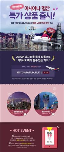 3월 17·18·20·23·24·25·27일중 선택해서 출발할 수 있다. 홍콩만 3일간 여행하며, 반나절 자유일정이 포함돼 있다.