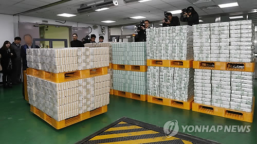 같은 기간 신권을 찍어내는 데 들어간 비용은 2012년 1천337억원, 2013년 1천293억원, 2014년 1천215억원으로 총 3천845억원이 소요됐다.