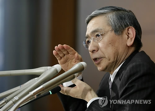 | △ 구로다 하루히코 일본은행 총재(EPA.연합뉴스.자료사진) |