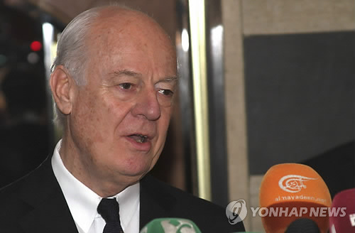 (유엔본부 AP=연합뉴스) 스테판 데 미스투라 유엔 시리아 특사는 17일(현지시간) 시리아 정부로부터 반군 거점도시 알레포에 대한 공격을 6주간 중단하겠다는 약속을 받았다고 밝혔다.