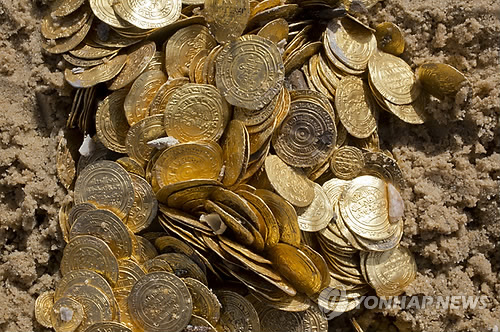 | △ (AP=연합뉴스) 이스라엘 서북부의 해저에서 중세시대 금화들이 대량으로 발견됐다고 이스라엘 유물 당국이 18일(현지시간) 밝혔다. |