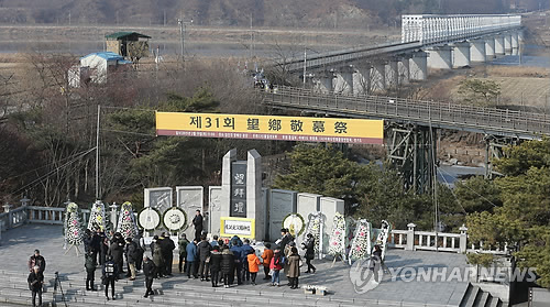 | △ 망배단에 모인 실향민 (파주=연합뉴스) 임병식 기자 = 설날인 19일 오전 경기도 파주시 임진각 망배단에서 열린 합동망향제에서 실향민 가족이 절하고 있다. |
