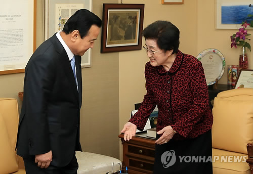 이 여사는 "국민을 위해 수고해달라. 잘하실 것으로 믿는다"며 취임을 축하했고, 이 총리는 5월로 예정된 이 여사의 방북을 위한 행정적 절차를 차질없이 준비하겠다며 방북하면 많은 역할을 해달라고 요청했다.