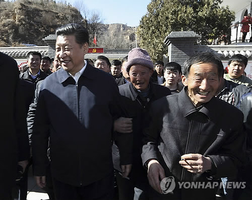| △ 시진핑, 춘제 앞두고 파격적인 '민심행보' (베이징=연합뉴스) 이준삼 특파원 = 시진핑(習近平) 중국 국가주석이 과거 15대 후반에서 20대 초반 시절 7년 간 토굴생활을 했던 산시성(陝西省) 옌안(延安)시 옌촨(延川)현에 있는 량자허(梁家河)촌을 지난 13일 방문했다. 과거 함께 노동을 했던 촌민들과 반갑게 인사를 나누는 시 주석. <<신화통신 인터넷판인 신화망 캡처>> 2015.2.14 jslee@yna.co.kr |