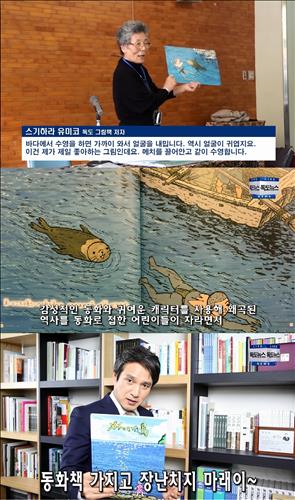 영상은 독도 그림책 저자인 스기하라 유미코가 초등학생들에게 강치(메치)에 관한 추억을 설명하는 것으로 시작된다.