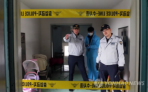 | △ 살인 사건이 발생한 천안 아파트 (천안=연합뉴스) 양영석 기자 = 23일 오전 7시께 충남 천안시 서북구 직산읍 한 아파트에서 일가족이 흉기에 찔린 채 발견됐다. 경찰이 사건이 발생한 아파트 현장 출입을 통제하고 있다. 2015.2.23 youngs@yna.co.kr |