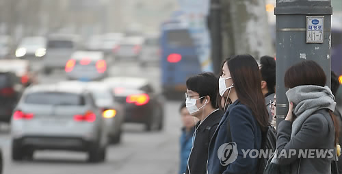 | △ 괴로운 황사 (서울=연합뉴스) 임헌정 기자 = 설 연휴가 끝난 뒤 맞는 첫 평일인 23일 중국발 황사가 한반도를 뒤덮은 가운데 서울 종로구 세종로네거리에서 마스크를 쓴 시민들이 출근길을 서두르고 있다. 2015.2.23 kane@yna.co.kr |