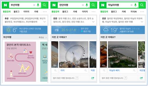 이용자들이 '국내외 지역명 + 여행' 류의 검색어를 입력한 뒤 해당 지역의 날씨 정보, 주변 명소 등을 추가로 검색하는 패턴을 보임에 따라 예측한 맞춤형 정보를 제공하는 것이다.
