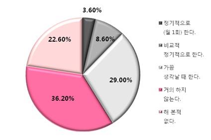 조사결과를 보면 지금까지 자가 검진을 해본 적이 없다는 응답이 22.6%나 됐으며, 자가 검진을 해본 적은 있지만, 지금은 거의 하지 않는다는 답변도 36.2%에 달했다.