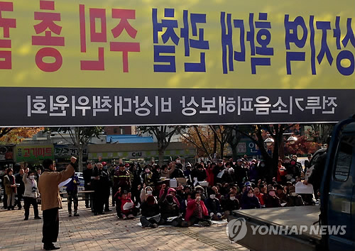 | △ 대구 동구 주민들이 대구공군기지 전투기 소음피해 보상을 요구하는 모습. <<연합뉴스DB>> |