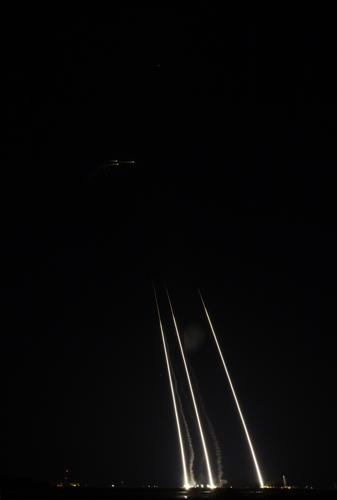 MDA에 따르면 미국 동부시간으로 이날 오전 2시30분께 항공우주국(NASA)의 버지니아 주 월롭스 비행시설에서 세 발의 단거리 탄도 미사일 목표물이 1분 사이에 거의 동시다발로 발사됐다.