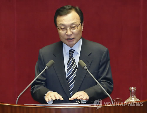 | △ 대정부 질문하는 이해찬 의원 (서울=연합뉴스)이상학 기자 = 새정치민주연합 이해찬 의원이 25일 오전 국회에서 열린 정치·외교·통일·안보 분야 대정부 질문에서 이완구 총리에게 질문을 하고 있다. |
