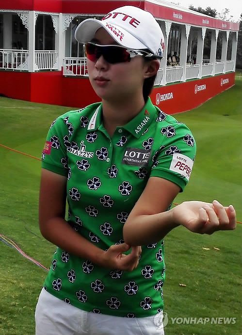 | △ 인터뷰 하는 김효주 (촌부리<태국>=연합뉴스) 김동찬 기자 = 오는 26일 태국 촌부리의 시암 컨트리클럽 파타야 올드코스에서 열리는 '미국여자프로골프(LPGA) 투어 혼다 LPGA 타일랜드'에 출전하는 김효주(20.롯데)가 대회 개막 전날인 25일 대회장에서 인터뷰하고 있다. 2015.2.25 emailid@yna.co.kr |