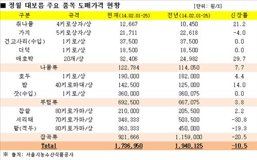 대보름 앞두고 나물·부럼 가격↑ 잡곡은 약세