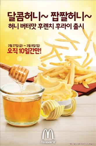 맥도날드 후렌치 후라이에 꿀과 버터가 어우러진 양념을 곁들인 제품이다. 가격은 미디엄 2천원, 라지 2천300원.