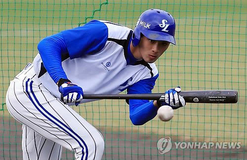 | △ 구자욱, 넥센과 연습경기 1번 타자 출전 (온나<일본 오키나와현>=연합뉴스) 홍해인 기자 = 프로야구 삼성 라이온즈의 유망주 구자욱이 24일 오전 일본 오키나와현 온나 아카마 구장에서 열리는 넥센과의 연습경기에 번트 연습을 하고 있다. 이날 구자욱은 넥센과의 경기에 1번 타자로 선발 출전한다. 2015.2.24 hihong@yna.co.kr |