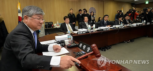 | △ 원안위 개회 (서울=연합뉴스) 신준희 기자 = 26일 오전 서울 광화문 원자력안전위원회 대회의실에서 열린 전체회의에서 이은철 위원장이 개회를 알리는 의사봉을 두드리고 있다. |