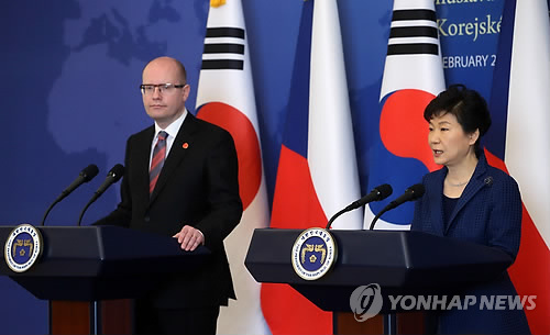 (서울=연합뉴스) 정윤섭 박성민 기자 = 박근혜 대통령은 26일 청와대에서 방한 중인 보후슬라프 소보트카 체코 총리와 정상회담을 하고 북한의 비핵화와 6자회담 복귀를 촉구하는 공동선언을 채택했다.