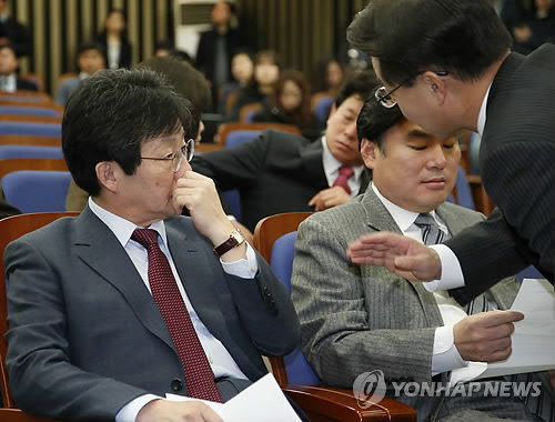 새누리당은 국회에서 정책의원총회를 열어 1시간여 동안 소속 의원들의 의견을 수렴했지만, 법 적용 대상을 언론인과 사립학교 교원까지로 확대하는 국회 정무위원회 수정안에 대한 찬반이 팽팽히 맞서 의견을 통일하지 못했다고 참석자들이 전했다.