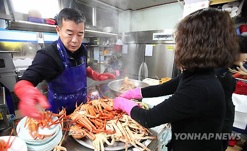 | △ 주말에 가볼 만한 곳: 1월은 대게의 계절 (울진=연합뉴스) 성연재 기자 = 1월은 게 껍질 속에 살이 뽁뽁하게 올라오는 계절. 동해안 대게 전문점들이 분주히 손님을 맞고 있다. 2015.1.2 polpori@yna.co.kr |