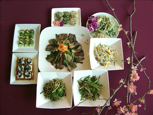 해산물 봄야채 볶음, 봄동 무침, 달래 무침, 하루나 무침, 종삼 무침 등이 제공되며, 아스파라거스 샐러드와 각종 허브로 장식한 디저트류도 맛볼 수 있다. 가격은 8만9천원.