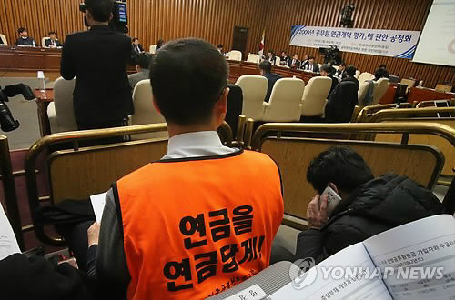 | △ 공무원 노조, `공무원 연금개혁 평가 공청회' 방청 (서울=연합뉴스) 백승렬 기자 = 공무원 노조 관계자들이 26일 국회에서 공무원연금개혁 특별위원회와 공무원연금개혁을 위한 국민대타협기구가 공동으로 개최한 `2009년 공무원 연금개혁 평가에 관한 공청회'를 방청하고 있다. |