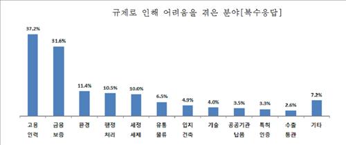 (서울=연합뉴스) 임은진 기자 = 중소기업이 최근 2년간 규제로 어려움을 가장 많이 겪은 분야는 고용과 인력인 것으로 조사됐다.