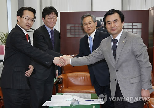 새누리당 유승민, 새정치민주연합 우윤근 원내대표는 2일 오후 국회에서 만나 김영란법 위헌 소지가 있는 쟁점조항 수정 등을 놓고 일괄 타결을 시도했다.