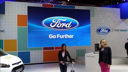 `포드 스마트 모빌리티(이동성)'라는 주제로 전시장을 마련한 미국 자동차 회사 포드는 각국에서 온 취재진을 상대로 "왜 자동차 서비스에서 모바일이 중요한지"를 설명했다.