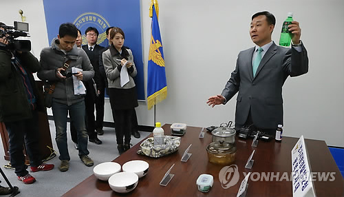 | △ 경기경찰2청 이재원 광역수사대장이 범행 증거물을 들고 사건 개요를 설명하는 모습. 2015.3.3 andphotodo@yna.co.kr |