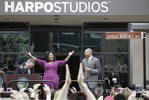 | △ 시카고 시는 2011년 하포 스튜디오 앞 길을 '오프라 윈프리 도로'(Oprah Winfrey Way)로 명명했다. (AP=연합뉴스, 자료사진) |