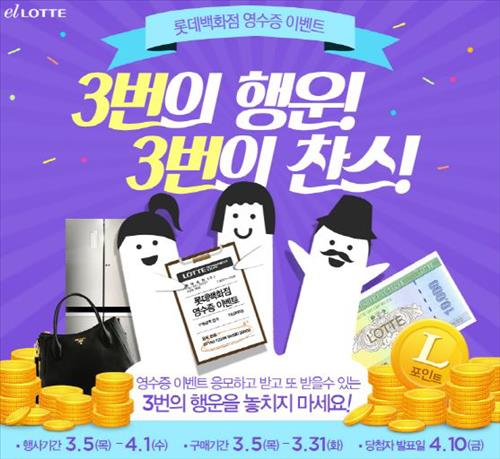 롯데백화점 영수증 번호로 응모해 당첨된 고객에게는 현금처럼 쓸 수 있는 L포인트 5천점(300명)·3만점(200명), 엘롯데 주문번호 응모 고객에게는 롯데백화점 상품권 3만원권(200명)을 증정한다.
