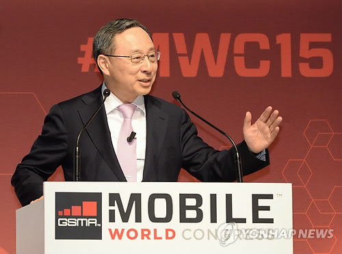 | △ MWC 기조연설하는 황창규 KT 회장 (바르셀로나 사진공동취재단=연합뉴스) 황창규 KT 회장이 3일 오전(현지시간) 스페인 바르셀로나에서 열린 세계 최대 글로벌 이동통신 전시회 '모바일 월드 콩그레스(MWC) 2015'에서 `5G, 새로운 미래를 앞당기다'라는 주제로 기조연설을 하고 있다. |