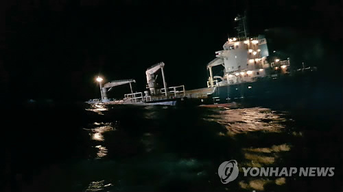 (군산=연합뉴스) 김진방 기자 = 전북 군산 어청도 해상에서 4천t급 화물선이 침몰한 모래채취선과 추돌하는 사고가 발생했다.
