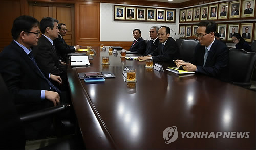 | △ 리퍼트 대사 피습 긴급 차관회의 (서울=연합뉴스) 전수영 기자 = 추경호 국무조정실장이 5일 오전 서울 세종로 정부서울청사에서 열린 마크 리퍼트 주한 미국대사 피습 사건 관련 긴급 차관회의를 주재하고 있다. |