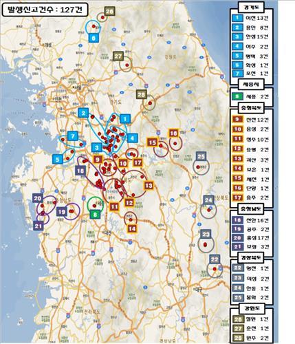 지난해 12월부터 유행하고 있는 구제역으로 총 131개 농장의 소·돼지 11만4천여마리가 살처분됐다.