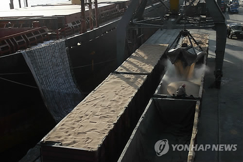 | △ 러시아에서 온 북한 구호식량 (AP=연합뉴스 자료사진) |