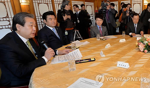 | △ 김무성 대표 모두발언 (서울=연합뉴스) 전수영 기자 = 새누리당 김무성 대표가 6일 오전 서울 삼청동 총리공관에서 열린 첫 고위당정청 회의에서 모두발언을 하고 있다. |