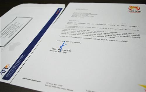 서 교수는 지난 1월 27일 "정치적 표현을 금지하는 국제축구연맹(FIFA)의 규정에 따라 전범기를 공식 책자 등에 사용하는 것은 있을 수 없는 일"이라며 AFC에 우편물을 보냈다. 수사이 사무총장이 한 달여 만에 AFC의 입장을 전해온 것이다.