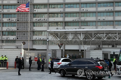 | △ 민화협, 미국 대사관 찾아 '피습' 사과 (서울=연합뉴스) 최재구 기자 = 9일 오전 서울 광화문 미국대사관으로 민족화해협력범국민협의회(민화협) 차량이 들어가고 있다. 민화협은 마크 리퍼트 미국 대사 피습사건과 관련해 9일 주한 미국 대사관을 직접 방문해 사과의 뜻을 전달했다고 밝혔다. |