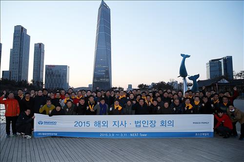 | △ 대우인터내셔널이 9∼11일 사흘간 인천 송도 대우인터내셔널 사옥에서 전 세계 50여개국에 파견된 해외지사·법인장과 국내 임원이 참가하는 '2015 해외 지사·법인장 회의'를 개최했다. |