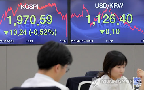 이날 코스피는 장중 1,980대를 유지했으나 장 막판에 고꾸라지면서 전날보다 10.24포인트(0.52%) 내린 1,970.59로 거래를 마쳤다.