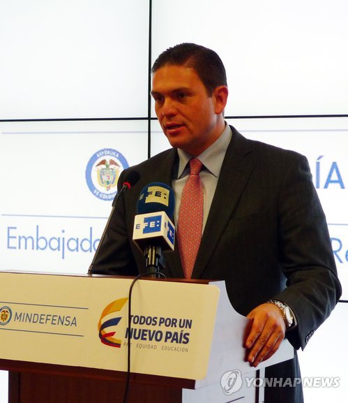 양국 국방분야 협력 논의차 방한한 핀손 장관은 이날 서울 주한콜롬비아대사관에서 기자들과 만나 "이번에 방한하는 사절단은 콜롬비아 방산기업과 국방분야 실무진으로 구성될 것"이라고 말했다.