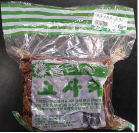 (서울=연합뉴스) 김병규 기자 = 식품의약품안전처는 둘리농산㈜이 판매한 '삶은 고사리'에서 기준치를 초과한 카드뮴이 검출돼 제품의 판매를 중단하고 회수조치한다고 13일 밝혔다.