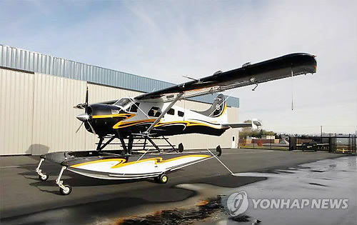 | △ 제천 수상비행장에서 운항할 세스나 경비행기 (제천=연합뉴스) 전창해 기자 = 국내 최초 수상비행장인 충북 제천 '청풍호 수상비행장'에서 오는 9월께부터 운항할 '세스나 T-206H' 기종 경비행기. 제천시는 지난해 말까지 40억원을 들여 청풍호반에 정박장·경사대·착륙대·탑승로·주기장·격납고·대기실 등을 갖춘 수상 비행장(7만2천여㎡)을 준공했다. 2015.3.15 <<제천시 제공>> jeonch@yna.co.kr |