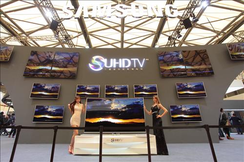| △ 상하이 가전박람회가 열린 신국제박람센터에 전시된 삼성 SUHD TV |